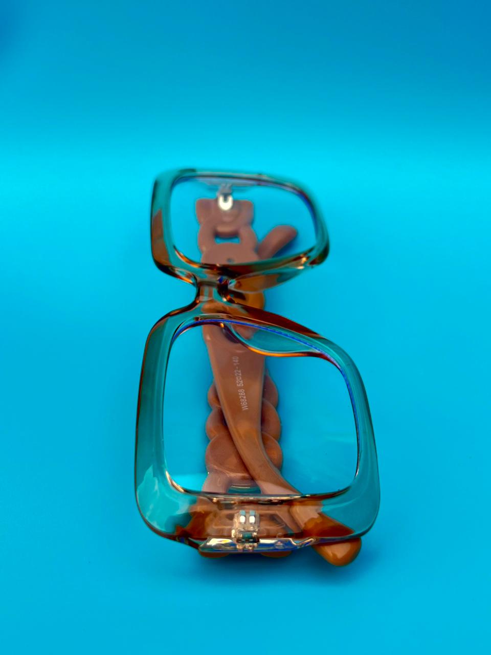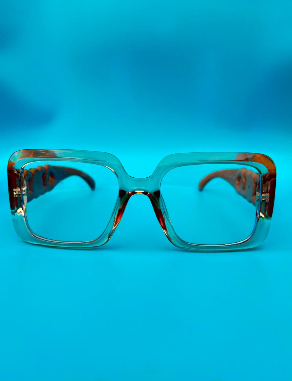 - Armação quadrada oversized em tom âmbar translúcido — visual moderno e impactante.